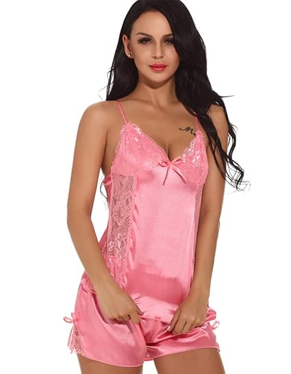 Women S Satin Sleepwear Lace Pajama Set Spaghetti Strap Sexy