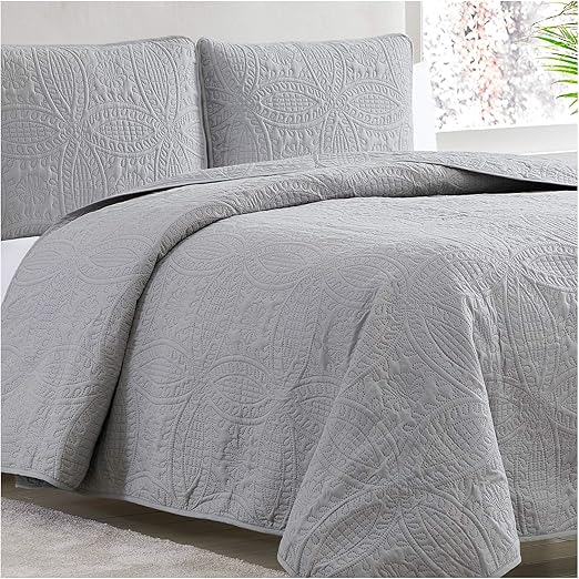 Ameha Quilted Bedspread Throw Embossed Pattern Quilt Coverlet
