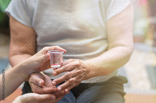 Nurse Taking Care Of Her Patient Mature Asian Elderly Woman Happy
