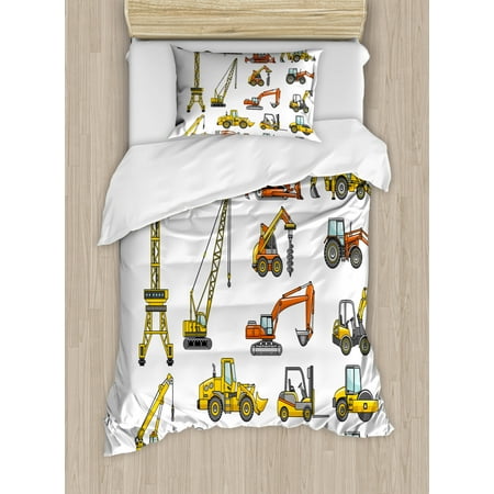 Construction Duvet Cover Set Cute Style Vehicles And Heavy