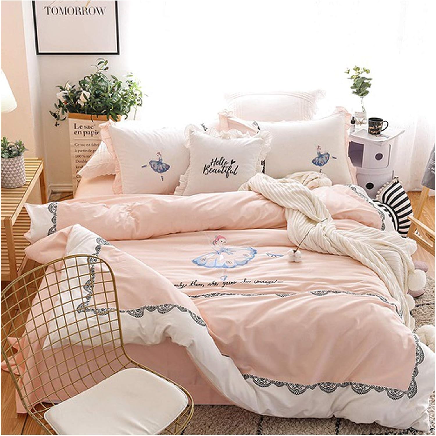 Sunnyrain 4 Pieces Jacquard Silk Cotton Lace Luxury Bedding