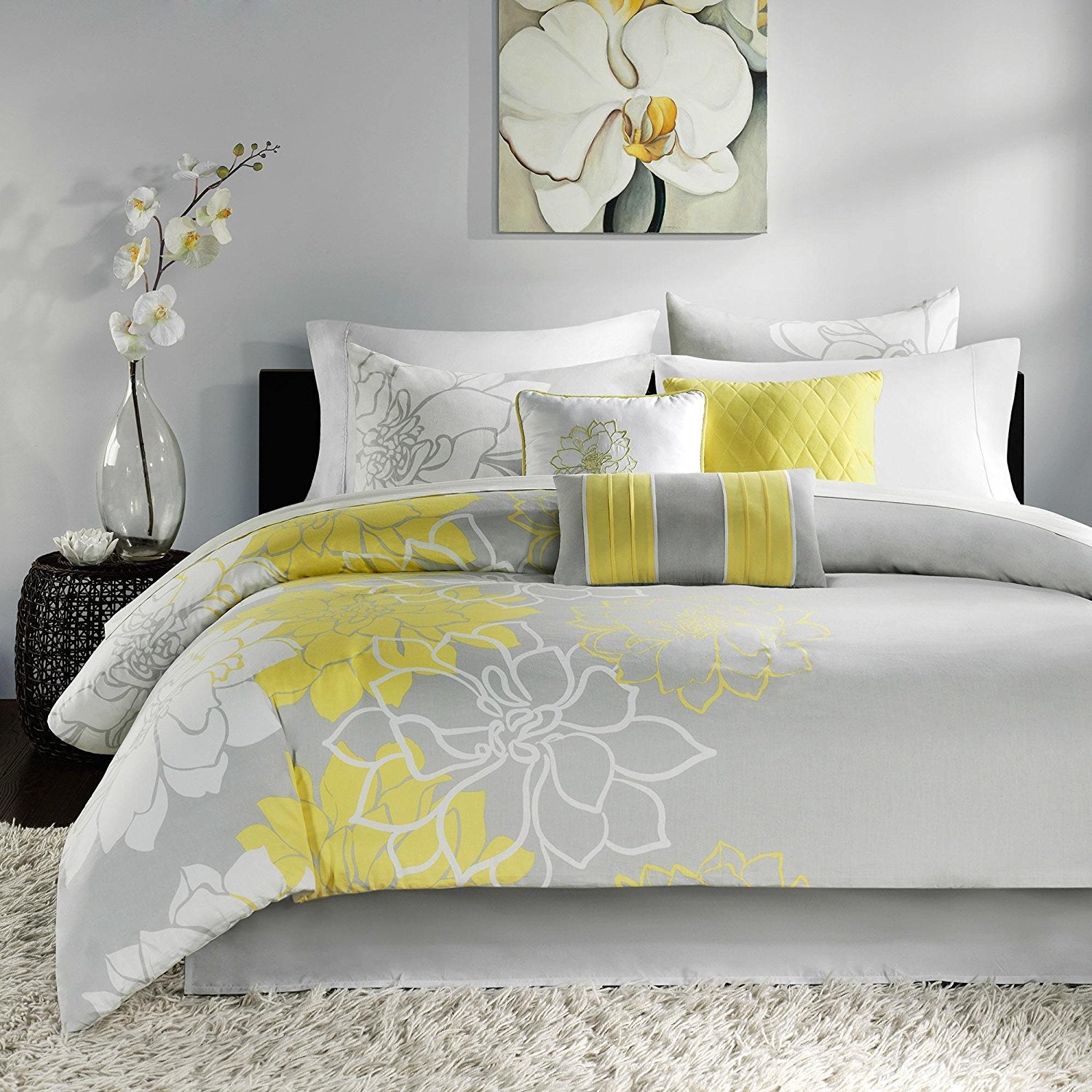 Amazon Com 7 Piece Yellow Floral King Size Comforter Set