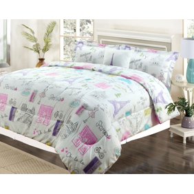 Bedding Queen 5 Piece Girls Comforter Bed Set Paris Eiffel Tower