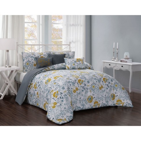 S L Home Fashions Mustard Gray Edda Ten Piece Comforter Set
