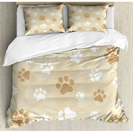 Vankine Twin Size Luxury Duvet Cover Set Comfort Dog Paw Prints