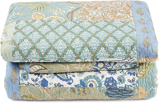 Unimall Quilted Bedspread Throw Double King Size 100 Cotton Blue